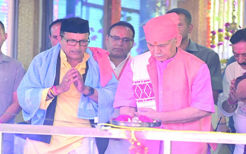 سرینگر//لیفٹیننٹ گورنر منوج سنہا نے زیشت ماتا جینتی کے موقع پر زیشت دیوی مندرزیٹھیا سرینگر میں حاضری دی ۔انہوں نے سب کی بھلائی اور جموں وکشمیر میں امن اور خوشحالی کے لئے دعا کی۔اس موقع پر لیفٹیننٹ گورنر نے عقیدت مندوں سے ملاقات کی اور اُنہیں دِل کی گہرائیوں سے مبارک باد دی۔ انہوں نے زیشت ماتا جینتی کی روحانی اور ثقافتی اہمیت پر زور دیا جو خطے کی قدیم روایات کا ایک اہم حصہ ہے۔اس موقعہ پرزیشت دیوی پربندھک کمیٹی کے ارکان، سرکردہ شہری اور مختلف شعبہ ہائے زِندگی سے تعلق رکھنے والے اَفراد موجو دتھے جو عقیدت، یکجہتی اور مذہبی ہم آہنگی کی علامت ہے۔