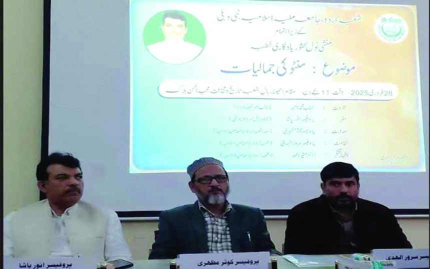 نئی دہلی//شعبہ اردو جامعہ ملیہ اسلامیہ کے زیر اہتمام منعقدہ منشی نول کشور یادگاری خطبے میں معروف ادبی نقاد اور دانشور پروفیسر انور پاشا نے منٹو کی جمالیات کے عنوان سے ایک پر مغز اور فکرانگیزخطبہ پیش کیا ۔انہوں نے اپنے خطاب میں جمالیات کے نظری مباحث اور سعادت حسن منٹو کے جمالیاتی پہلوں کو انتہائی گہرائی اور بصیرت کے ساتھ پرکھا ۔انہوں نے منٹو کی تحریروں میں پوشیدہ انسانی نفسیات، معاشرتی تضادات، طبقاتی تصادم اور معاشرے کی حقیقی صورت حال کو اجاگر کرنے کی منفرد صلاحیت پر مفصل روشنی ڈالی۔ اس حوالے سے انہوں نے منٹو کو ایک مشاق صیقل گر قرار دیا جو قاری کے حس جمال کی صیقل گری کرتا ہے کیوں کہ وہ ایک ایسے انسان کا نقش گر ہے جو بظاہر مکروہ اور بدطینت ہے لیکن باطن میں ازلی و ابدی انسانی جوہر سے مالامال ہے۔ انھوں نے مزید کہا کہ منٹو کے حس جمال کی گردش کا محور ذاتِ انسان اور جوہرِ انسان کے عرفان پر ہے۔ منٹو کی جمالیات صرف الفاظ کی خوبصورتی تک محدود نہیں، بلکہ وہ ایک ایسا آئینہ ہے جو معاشرے کے چہرے پر موجود داغوں کو بے نقاب کرتا ہے۔ منٹو کے یہاں جمالیات کا تصور روایتی تصور جمال سے مختلف ہے کیوں کہ ہر منظر ناظر کے لیے مختلف تناظر رکھتا ہے، لہذا منٹو ناظر کی حیثیت سے خوبصورتی کو تلخ حقائق میں ڈھونڈتا ہے اور یہی اس کی عظمت ہے۔ بظاہر مکروہ اور بد طینت و بداعمال انسانوں میں وہ عرفان ذات اور جوہر ذات کے اعلی مظاہر تلاش کرتا ہے۔فاضل مقرر نے کہا کہ منٹو کے کردار محض کاغذی کردار نہیں ہیں، بلکہ وہ معاشرے کے ہر طبقے کی نمائندگی کرتے ہیں اورمنٹو کا ہر کردار اپنی مکمل انفرادیت کے ساتھ سامنے آتا ہے۔صدر شعبہ اردو، جامعہ ملیہ اسلامیہ پروفیسر کوثر مظہری نے صدارتی خطاب میں موضوع پر مہمان مقرر کی گرفت اور موضوع کے قابل فہم اظہار کی ستائش کی۔ خطبے کی افادیت کو اجاگر کرتے ہوئے انھوں خطاب کو انتہائی معلوماتی اور فکری اعتبار سے مالا مال قرار دیا۔