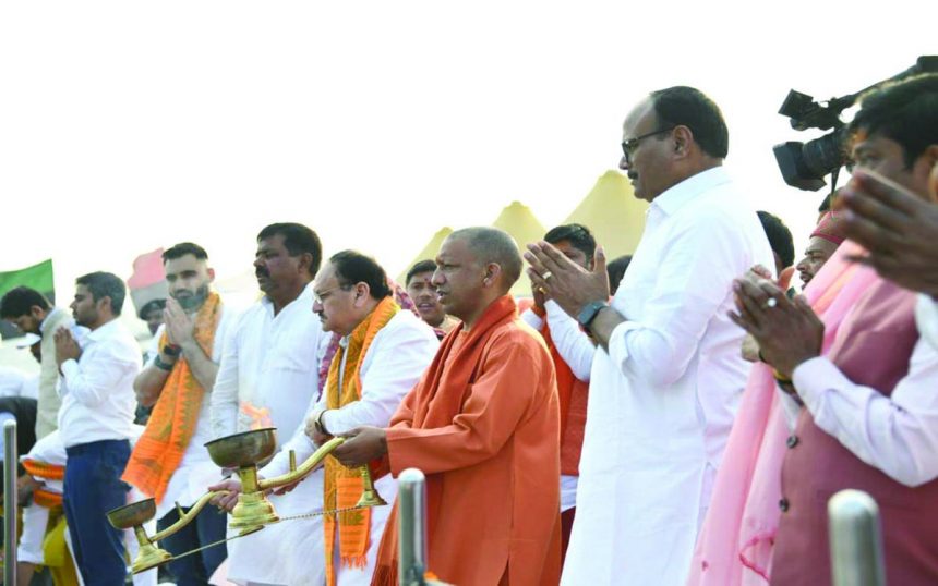 مہاکمبھ نگر//بی جے پی کے قومی صدر جے پی نڈا نے اپنے خاندان کے ساتھ ہفتہ کو تروینی سنگم میں مہاکمبھ میں ڈبکی لی۔ مقدس غسل سے پہلے، ان کے ساتھ اتر پردیش کے وزیر اعلی یوگی آدتیہ ناتھ، بی جے پی کے ریاستی صدر بھوپیندر سنگھ چودھری، کابینہ کے وزیر سواتنتر دیو سنگھ، وزیر نند گوپال گپتا ‘نندی’ اور قابل احترام روحانی پیشوا ستووا بابا بھی شامل ہوئے۔نڈا خاندان نے سب کی بھلائی کے لیے دعا کرتے ہوئے ماں گنگا کو ایک مقدس ‘چوناری’ بھی پیش کی۔ جے پی نڈا ہفتہ کو اپنے خاندان کے ساتھ پریاگ راج پہنچے، جہاں مہا کمبھ نگر کے تریوینی سنکول میں سی ایم یوگی آدتیہ ناتھ نے ان کا پرتپاک استقبال کیا۔ وہاں سے قائدین اریل گھاٹ سے تیرتی جیٹی کے ذریعے مقدس سنگم کی طرف روانہ ہوئے۔پرسکون پانیوں کے درمیان، بی جے پی کے قومی صدر نے، سی ایم یوگی اور ان کے خاندان کے ساتھ، سائبیریا کے ہجرت کرنے والے پرندوں کو کھانا کھلایا، جو امن اور ہم آہنگی کا ایک علامتی اشارہ ہے۔