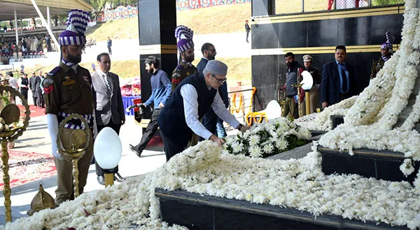 سرینگر// وزیر اعلیٰ عمر عبداللہ نے منگل کو پولیس یادگاری دن کے موقع پر زیون میں پولیس شہدا کو بھر پور خراج عقیدت پیش کرتے ہوئے فرائض کی ادائیگی میں ان کی اعلیٰ قربانیوں کو خراج تحسین پیش کیا۔یادگار شہدا پر پھولوں کی چادر چڑھائی گئی، جہاں اعلیٰ پولیس افسران اور شہید اہلکاروں کے اہل خانہ نے بھی انہیں خراج عقیدت پیش کیا۔پروقار تقریب کا اختتام گارڈ آف آنر اور قوم کی خدمت میں اپنی جانوں کا نذرانہ پیش کرنے والے شہدا کی یاد میں ایک لمحے کی خاموشی کے ساتھ ہوا۔