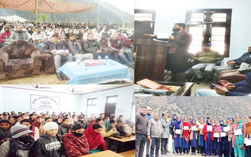 کشتواڑ//جے اینڈ کے بورڈ آف پروفیشنل داخلہ امتحانات نے اے آر آئی اور ٹریننگ ڈیپارٹمنٹ کے زیراہتمام ضلع کشتواڑ میں بیداری پروگرام/کیمپوں کا انعقاد کیا۔ڈگری کالج پاڈر اور ڈاک بنگلوچھاترومیں دو آگاہی پروگرام/کیمپ منعقد کیے گئے۔ان بیداری پروگراموں/کیمپوں کے انعقاد کا مقصد عام لوگوں، طلباء/پی آر آئیز میں مختلف پیشہ ورانہ کورسز کے بارے میں بیداری پیدا کرنا تھا جن کے امتحانات اور کونسلنگ JKBOPEE سیشن 2025-2026 کے دوران کر رہی ہے۔ان بیداری پروگراموں/کیمپوں کے دوران، 10ویں اور 12ویں کی اہلیت، ANM/GNM، بی فارمیسی/ڈی فارمیسی، بی آرکیٹیکچر اور بی ایڈ وغیرہ کی بنیاد پر مختلف انجینئرنگ کورسز، آیوش کورسز، میڈیکل کورسز اور پیرامیڈیکل کورسز میں داخلے کے بارے میں بیداری پیدا کرنا تھا۔بیداری پروگرامز/کیمپوں کا انعقاد اے آر آئی اور ٹریننگ ڈیپارٹمنٹ کی مجموعی نگرانی میں اور ڈپٹی کمشنر کشتواڑ راجیش کمار شاون کے تعاون سے پنچایتی راج اداروں،تعلیمی اداروں، این جی اوازاور دیگر اسٹیک ہولڈرز کے تعاون سے کیا گیا۔جے کے بوپی نے نوڈل آفیسر ڈاکٹر شبیر حسین کین کو سیکرٹری بوپی نامزد کیا اور ان کے ساتھ سیکشن آفیسر ذاکر حسین خان بھی تھے۔ڈاکٹر کین نے دونوں مقامات پر تمام پروفیشنل اسٹریمز اور کالجوں میں داخلوں کے لیے کورسز، کالجز اور طریقہ کار کے بارے میں تفصیلی معلومات دیں۔تفصیلی عارضی شیڈول یعنی۔ کورس کا نام، انٹیک، اہلیت، کورس کی مدت، آن لائن رجسٹریشن کی تاریخ، داخلہ امتحان کی تاریخ اور کل کالجز/اداروں (سرکاری اور پرائیویٹ) برائے 2025-26 کے سیشن کو کتابچے کی شکل میں شرکاء میں موقع پر ہی تقسیم کیا گیا۔پاڈرمیں، آشا ورکرز، آنگن واڑی کارکنان اور دیگر فیلڈ فنکشنری بھی کورسز کے بارے میں جانتی تھیں اور انہیں عام لوگوں تک پہنچانے کی ذمہ داریاں سونپی گئی تھیں۔ڈپٹی کمشنر جنہوں نے دونوں بیداری کیمپوں کی کڑی نگرانی کی اور اس بات کو یقینی بنایا کہ تیسرا اہم بیداری کیمپ 19 دسمبر 2024 کو ضلع ہیڈ کوارٹر کشتواڑ میں دیگر محکموں کے ساتھ لگایا جائے گا۔تمام کالجوں کی فہرست کے ساتھ تفصیلی پروگرام/شیڈول پاڈر اورچھاترو دونوں کیمپوں میں عام لوگوں کو فراہم کیا گیا ہے۔ طلباء اور عوام نے مطالبہ کیا کہ ایسے بیداری کیمپ مستقبل میں بھی منعقد کیے جائیں اور JKBOPEE پر زور دیا کہ وہ ہر ایک پر امتحانی مراکز رکھیں۔