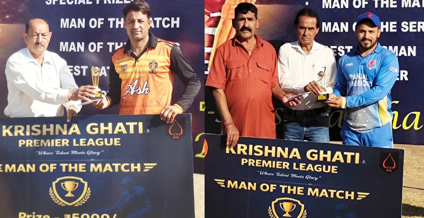 پونچھ//کرشنا گھاٹی پریمیئر لیگ کے دوسرا ایڈیشن کے آٹھویں دن اسپورٹس گراؤنڈ جھلّاس میں کرکٹ کے دو سنسنی خیز مقابلے کھیلے گئے جن میں کھلاڑیوں نے شاندار کارکردگی کا مظاہرہ کرتے ہوئے شائقینِ کرکٹ کو زبردست تفریح فراہم کی۔ اس ٹورنامنٹ کا انعقاد ننگی ٹکری بٹالین کی جانب سے کرشنا گھاٹی بریگیڈ کے زیر اہتمام آپریشن صدبھائونہ کے تحت کیا جا رہا ہے۔پہلے میچ (میچ نمبر 15) میں ڈومینیٹر الیون اور ریجول بیدی کرکٹ کلب کے درمیان زبردست مقابلہ ہوا۔ڈومینیٹر الیون نے ٹاس جیت کر پہلے بلے بازی کا فیصلہ کیا اور 15 اوورز میں 132 رنز بنائے۔ جواب میں ریجول بیدی کرکٹ کلب نے شاندار کارکردگی دکھاتے ہوئے ہدف 14.4 اوورز میں چار وکٹوں کے نقصان پر حاصل کر لیا۔ رام دیال کو 62 رنز کی ناقابلِ شکست اننگز کھیلنے پر مین آف دی میچ قرار دیا گیا۔اس ٹورنامنٹ کے دوسرے میچ (میچ نمبر 16) میں پی پی ٹائیگر اور پنجال وائرل آمنے سامنے آئے۔ پی پی ٹائیگر کی ٹیم 9 اوورز میں صرف 64 رنز پر ڈھیر ہو گئی جبکہ پنجال وائرل نے یہ ہدف صرف 6 اوورز میں حاصل کر کے شاندار فتح حاصل کی۔ سہیل شرما کو ان کی آل راؤنڈ کارکردگی پر مین آف دی میچ سے نوازا گیا۔کرشنا گھاٹی پریمیئر لیگ کا جوش و خروش ہر گزرتے دن کے ساتھ بڑھتا جا رہا ہے۔ آٹھویں دن کے مقابلوں میں عوام کی بڑی تعداد نے شرکت کی اس دوران 1350 تماشائیوں نے شرکت کی۔منتظمین کے مطابق ٹورنامنٹ کے کوارٹر فائنل مقابلے 16 نومبر 2025 سے اسپورٹس گراؤنڈ جھلّاس میں شروع ہوں گے، جن میں خطے کی نمایاں ٹیمیں ایکشن میں نظر آئیں گی۔ شائقین سے درخواست کی گئی ہے کہ وہ ان دلچسپ میچوں کو براہِ راست دیکھنے کا موقع ہاتھ سے نہ جانے دیں۔