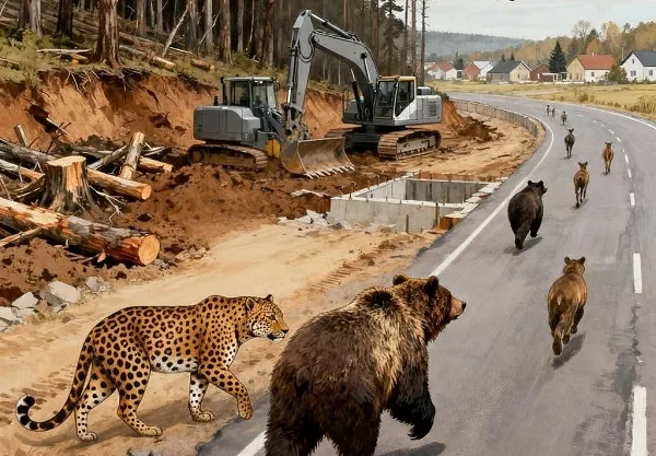 محکمہ نے عوام سے اپیل کی ہے کہ جنگلی جانوروں کی اطلاع فوری طور پر وائلڈ لائف کنٹرول روم سوپور یا نزدیکی پولیس سٹیشن کو دیں تاکہ بروقت کارروائی کی جاسکے۔راسخ رسول کے مطابق یہ وہی علاقہ ہے جہاں راجواڑ سے بنگس روڈ کے فیز۔I کے تحت گزشتہ چند برسوں میں سڑک کی توسیع اور جنگلاتی زمین کا استعمال کیا گیاہے۔یاد رہے کہ ماضی میں کئی ماحولیاتی ماہرین اور سماجی کارکنوں نے خبردار کیا تھا کہ اگر تعمیراتی سرگرمیوں میں ماحولیات کے تقاضوں کو نظرانداز کیا گیا تو آنے والے برسوں میں جنگلی حیات کی ہجرت زمین کے کٹائو اور قدرتی توازن کے بگاڑ جیسے سنگین اثرات دیکھنے کو ملیں گے۔ ایک سرکاری دستاویزات کے مطابق، ہندوارہ سے بنگس سڑک (فیز۔I)کی تعمیر کے لیے 14 ہیکٹر سے زائد جنگلاتی زمین وڈر بالا اور بدرکل فاریسٹ بلاک سے منتقل کی گئی۔یہ علاقہ دیودار، کیل، سپروس، فر اور پائن جیسے قیمتی درختوں سے بھرپور ہے، جو اب بڑی حد تک متاثر ہو چکا ہے۔زمین کی ساخت چونکہ ڈھلوانی ہے، اس لیے درختوں کی کٹائی سے مٹی کے تودے گرنے (landslides) اور پانی کے بہائو میں بے ترتیبی کے خطرات میں اضافہ ہو سکتا ہے ۔محکمہ جنگلات کی ابتدائی رپورٹ میں بھی خبردار کیا گیا ہے کہ یہ علاقہ نایاب جنگلی حیات جیسے ہمالیائی کالا ریچھ، تیندوا، جنگلی ہرن،، برفانی مرغ اور گیدڑ (Jackal) کی پناہ گاہ ہے۔لیکن سڑک کی تعمیر سے ان کی افزائشِ نسل اور انکے گھومنے پھرنے پر منفی اثر پڑ ا ہے۔مقامی دیہاتیوں کے مطابق 2017کے بعد، جب سے بنگس روڑ کی تعمیر کا کام شروع ہوا، جنگلی جانوروں کی آبادی کے قریب آنے کے واقعات میں نمایاں اضافہ ہونے لگاہے۔پہلے جنگلی جانور دور پہاڑوں میں ہوتے تھے لیکن اب وہ نزدیکی دیہات میں کسی بھی وقت نمودار ہوسکتے ہیں۔ماحولیاتی ماہرین کا کہنا ہے کہ ماحولیاتی اثراتی مطالعہ (EIA) اور حفاظتی اقدامات کو یقینی بنانا لازم ہے۔راجو اڑ جنگلات کی یہ صورتحال ایک واضح اشارہ ہے کہ ترقی اور ماحولیات کے درمیان توازن قائم رکھنا اب ناگزیر ہو چکا ہے۔اگر حکومت اور محکمہ جنگلات نے بنگس روڈ کا منصوبہ نہ بنایا ہوتا، اور پہلے سے موجود ریشی ناری روڑ کو ہی وسعت دی ہوتی تو یہ خوبصورت خطہ، جو کبھی قدرتی حسن اور نایاب حیات کی پہچان تھا، آنے والے برسوں میں بھی اپنی اہمیت باقی رکھتا۔ لیکن اب روڑ کی تعمیر سے جہاں ماحولیاتی توازن بری طرح متاثر ہوا ہے اور ایک خوبصورت علاقے کو تباہ کردیا گیا ہے، یہ علاقہ آنے والے وقت میں محض خشک پہاڑوں اور اجاڑ راستوں کا منظر بن سکتا ہے۔