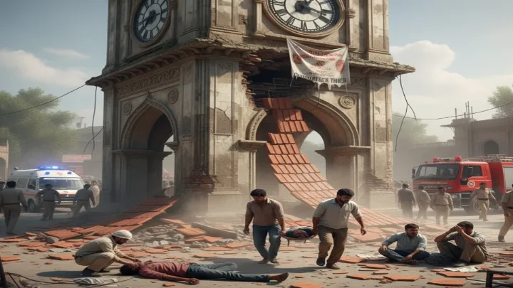 چاڈورہ کلاک ٹاور پر ٹائلیں گرنے سے 4 افرادزخمی، ایک کی حالت نازک