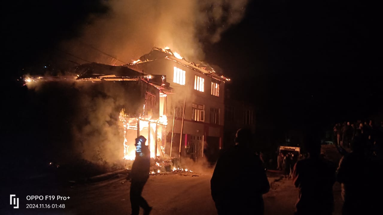 ڈوڈہ کے بھٹیاس میں آگ کی بھیانک واردات | 1رہائشی مکان و 3 منزلہ عمارت خاکستر، مقامی لوگوں کی جانچ و فائر بریگیڈ گاڑی کی مانگ