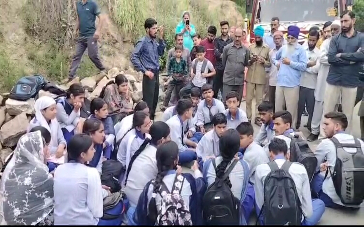 ڈوڈہ مرمت شاہراہ پر طلباء و طالبات کا احتجاج