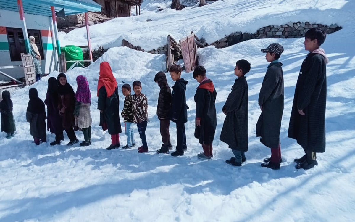 بھاری برف کے بیچ مڑواہ اور واڑون میں سرکاری سکولوں میں تعلیمی عمل مشکلات کا شکار | سکولوں کے صحن میں کئی فٹ برف جمع ،عمارتیں بھی معیاری نہیں