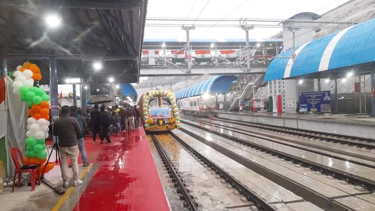 بانہال سنگلدان سیکشن پر وزیر اعظم نے پہلی ٹرین کو ہری جھنڈی دکھا کر روانہ کیا