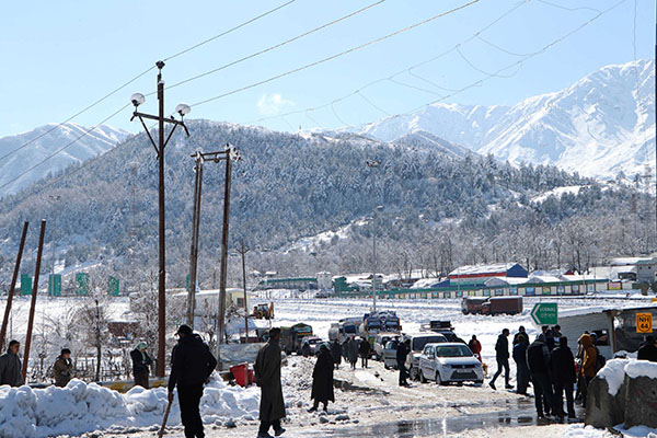 بارشوں اور برفباری سے خراب ہوئی شاہراہ پر ڈھلواس میں مرمتی کے پیش نظر ٹریفک دو گھنٹے معطل رہا | بانہال سیکٹر میں پھسلن سے ٹریفک کی روانی اثر انداز