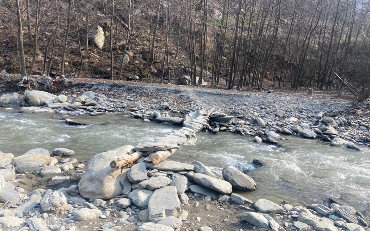 گندوہ کے بھنگرو میں کالگونی دریا پر لکڑی کا عارضی پل لوگوں کیلئے وبال جان