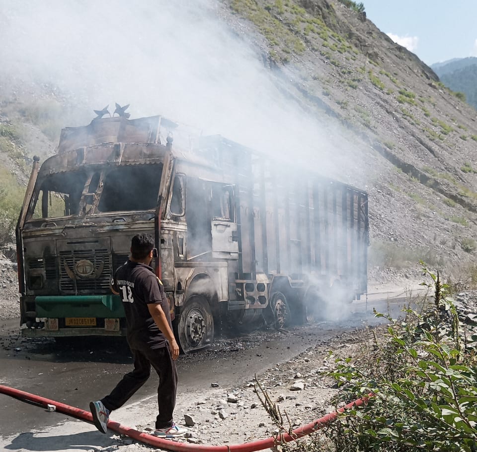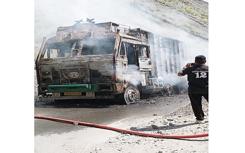 شاہراہ پر آتشزدگی کے واقع میں ٹرک کو نقصان، آمد و رفت متاثر