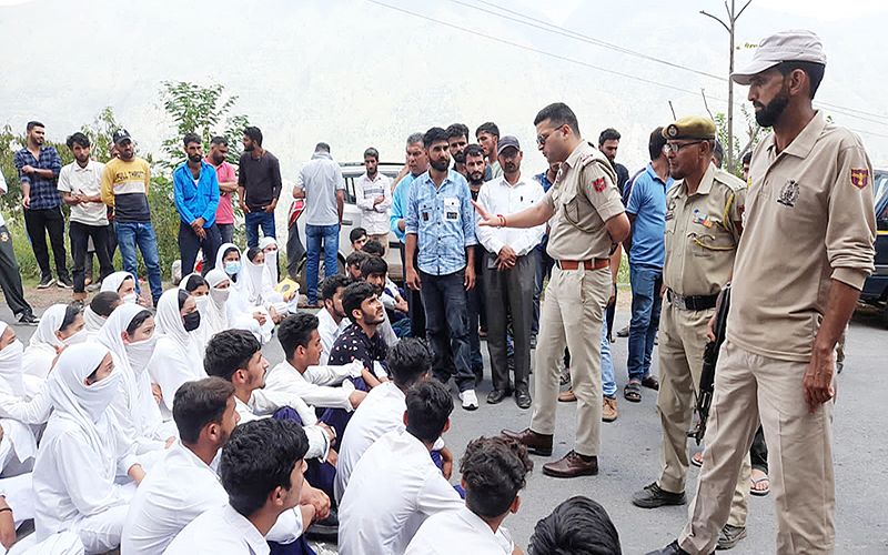 گول رام بن شاہراہ پر سکولی طلبا ء کا احتجاجی مظاہرہ