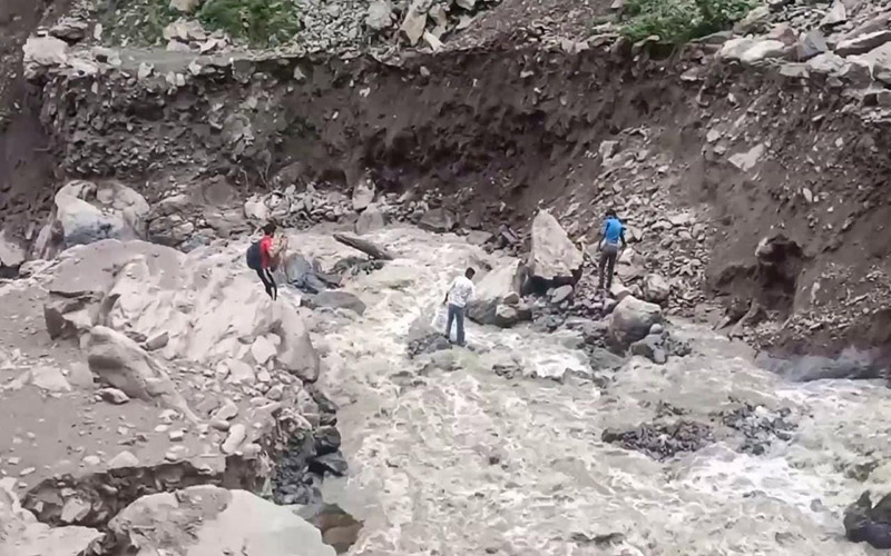 دچھن سڑک پر ٹنڈر نالے کا حصہ پانی بہا لے گیا، سڑک رابطہ منقطع
