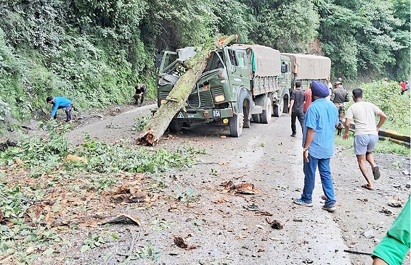 محمد تسکین بانہال//ضلع رام بن میں جاری بھاری بارشوں کے درمیان گرتے…