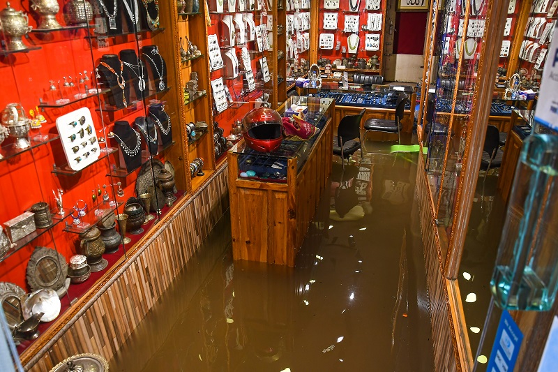 پولو ویو مارکیٹ میں پانی دکانوں کے اندر داخل