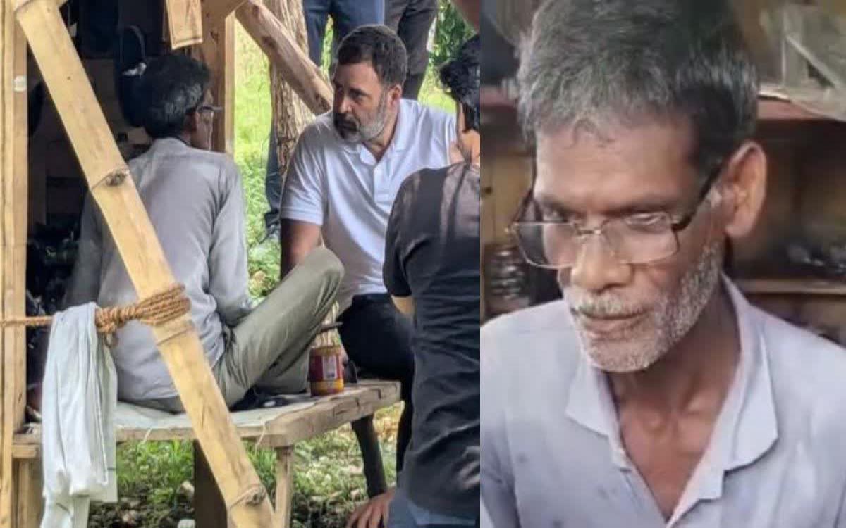 راہل گاندھی کی انکساری ، موچی کی دکان پر خود چپل کی سلائی کی