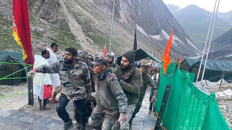 امرناتھ گپھا کے قریب تلاشی آپریشن جاری، 15ہزار سے زائد درماندہ یاتریوں کو نکالا گیا