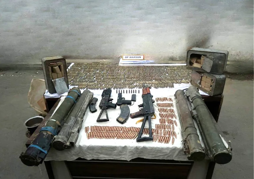 سری نگر/شمالی کشمیر کے ضلع کپواڑہ کے وارسن علاقے میں فوج اور جموں و کشمیر پولیس نے ایک کامیاب آپریشن کے دوران ملی ٹینٹوں کی کمین گاہ سے بڑی مقدار میں اسلحہ و گولہ بارود برآمد کیا ہے۔فوج کی چنار کور نے اپنے ایک بیان میں کہا کہ یہ کارروائی مخصوص انٹلی جنس اطلاع کی بنیاد پر 8 اکتوبر کو بریجتھور جنگلاتی علاقے میں انجام دی گئی۔بیان کے مطابق ’مخصوص خفیہ اطلاع ملنے پر فوج اور جموں و کشمیر پولیس نے بریجتھور فاریسٹ، وارسن کپواڑہ کے علاقے میں مشترکہ سرچ آپریشن شروع کیا۔ دورانِ تلاشی، سیکورٹی فورسز نے ایک ملی ٹینٹ ٹھکانہ دریافت کیا، جہاں سے دو اے کے سیریز رائفلیں، چار راکٹ لانچرز، بھاری مقدار میں گولہ بارود اور دیگر جنگی ساز و سامان برآمد کیا گیا۔‘
